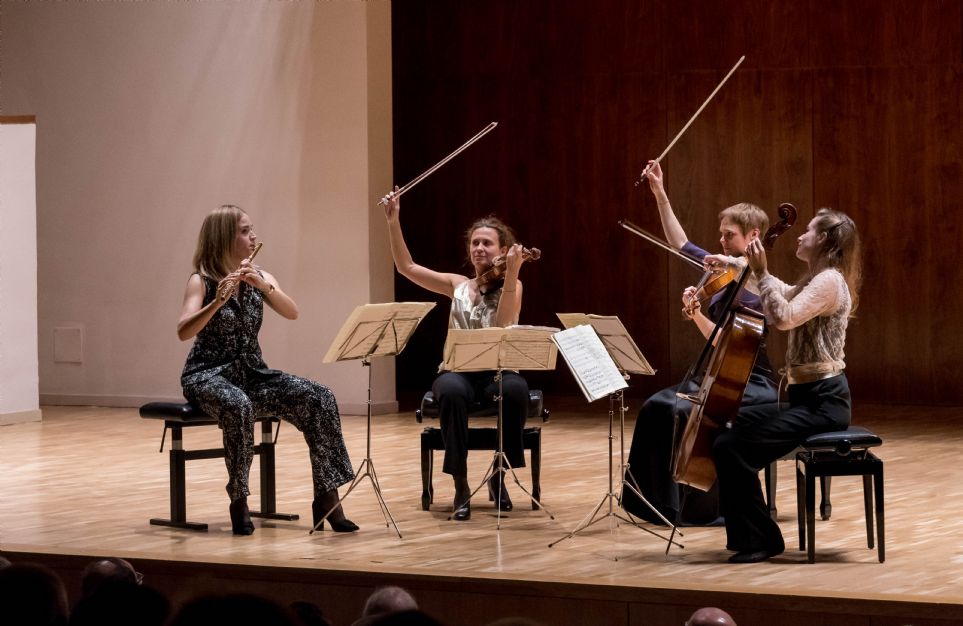 Madrid. 5-XI-2019. Auditorio Nacional de Música. Centro Nacional de Difusión Musical. Liceo de Cámara XXI. Clara Andrada flauta; Lorenza Borrani, violín; Simone Jandl, viola y Luise Buchberger, violonchelo. Serenata en re mayor, Op. 25 de L. Beethoven; Cuarteto en re mayor, KV 285 y Cuarteto en do mayor, KV 285b, de W. A. Mozart, y Trío de cuerda en si bemol mayor, D581, de F. Schubert.