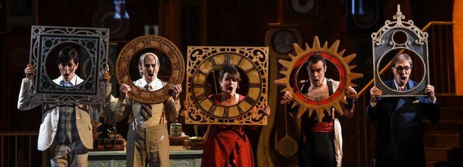 Oviedo. 6-IX-2020. Teatro Campoamor. L’heure espagnole – La hora española (Maurice Ravel). Maite Beaumont (Concepción), Joel Prieto (Gonzalve), Régis Mengus (Ramiro), Francisco Vas (Torquemada), Felipe Bou (Don Íñigo Gómez). Orquesta Sinfónica del Principado de Asturias. Dirección musical: Maximiano Valdés. Dirección de escena: Emilio Sagi. Les Mamelles de Tirésias – Los pechos de Tirésias (Francis Poulenc). Sabina Puértolas (Thérèse), Régis Mengus (El marido), David Menéndez (El Gendarme/El director del Teatro), David Oller (Presto), Francisco Vas (Lacouf/El periodista), Anna Pennisi (Vendedor de periódicos). Coro de la Ópera de Oviedo. Orquesta Sinfónica del Principado de Asturias. Dirección musical: Maximiano Valdés. Dirección de escena: Emilio Sagi.