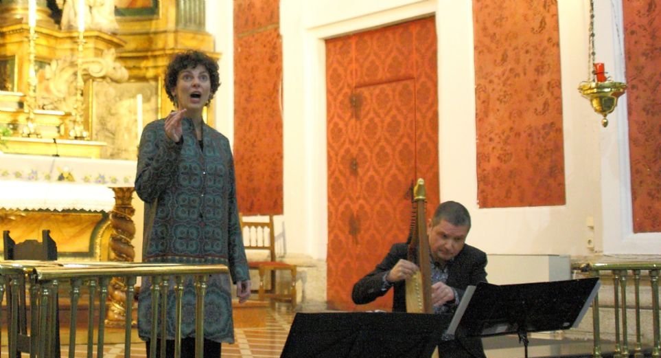 Madrid. 7-III-2020. Iglesia de las Mercedarias de Góngora. El canto de Polifemo. Chantador del joi d´amor. Canciones de Bernart de Ventadorn (...1147-1170…). Paloma Gutiérrez del Arroyo [canto], Manuel Vilas [arpa medieval].