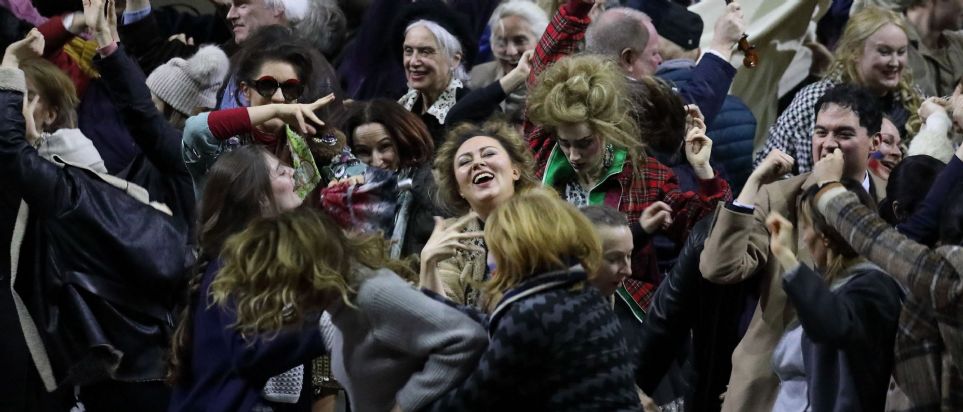 La puesta en escena de Dmitri Tcherniakov –coproducción con el Liceo de Barcelona- me saca de la obra desde el primer momento. ¡Qué gran diferencia con la de Los diablos de Loudun del día anterior!. La primorosa música de Prokofiev con la que se inicia la primera escena, es un maravilloso nocturno, en el que se respira la noche, se siente la Luna y la vegetación del jardín, que enmarca la conversación amorosa entre Natacha y Bolkonski. Pues nada, en el escenario vemos una multitud de refugiados –media ciudad debía de estar sobre el escenario- echados en el suelo o sobre colchonetas situados en una reproducción de la sala de las columnas de la Casa de los sindicatos de Moscú. En este recinto tuvieron lugar en los años 30 los Juicios que organizó Stalin contra sus enemigos. También fue el lugar de celebraciones del régimen y velatorio de los jerarcas soviéticos, además de sala que acogió conciertos desde la segunda mitad del siglo XIX. En fin, concesiones, huidas a lo políticamente correcto, complejos varios y amilanamiento. La segunda parte, la guerra, con el protagonismo de la batalla de Borodinó, se convierte en una parodia. Los refugiados se entretienen «jugando a la guerra» y un personaje histórico tan importante como Napoleón es tristemente ridiculizado, mientras el Marsical Kutusov es reducido a casi un figurante, Una lamentable patochada. Es decir, el día antes podemos ver sin problema durante la representación de Los diablos de Loudun cómo se tortura cruelmente a un hombre y se le quema vivo en la hoguera y al día siguiente se enmascara y escamotea puerilmente una guerra de hace dos siglos. Las guerras han existido y existen, muchas actuales y contemporáneas, pero no nos importaban, porque se producían lejos. La guerra es consustancial a la humanidad, no se debe ocultar su crudeza y el sufrimiento que conlleva –como subraya el propio Tolstoi en una frase suya que puede leerse en el escenario al comienzo de la representación-, porque si lo ocultamos o banalizamos estamos condenados a repetir los desastres una y otra vez. En fin, para culminar el dislate, una escena tan maravillosa como la muerte de Andrei Bolkonski también se resuelve en una triste parodia con el barítono aquejado de extraños espasmos. Una pena.