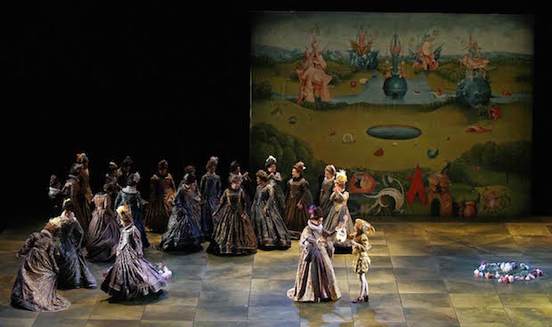 Por su parte, la caracterización del Infante como una especie de pobre anormal, por muy fiel al a realidad que sea, es totalmente contraproducente y choca con la música y el texto, no digamos su inexplicable suicido final. Estamos con todos los matices que se quieran, con sus elementos dubitativos, ante un todo un tenor romántico protagonista de melodrama decimonónico con rasgos heroicos, de lucha por el bien, por la justicia, juvenil, impetuoso… ¿Quién puede creer que Posa se sacrifique por este lelo que vemos sobre el escenario en este montaje? ¿Es este demente el salvador que lega a España? Por lo demás, la puesta en escena sobre una escenografía desnuda, discurre sin sobresaltos con un movimiento escénico más bien convencional, cuando no somero. Cabe destacar el magnífico vestuario de Pedro Moreno, Premio Nacional de cine 2015, particularmente bellos los trajes de Elisabetta de Valois basados en las pinturas de Sofonisba Anguissola, que comparece sobre el escenario retratando a la consorte Real.