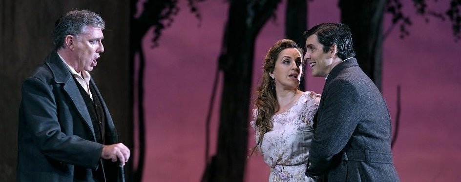 De lo que no pudo librarse la hermosísima obra de Guridi -por la que siento especial cariño, además de por sus valores intrínsecos, porque era la Zarzuela favorita de mi padre- es de la poda indiscriminada de los diálogos tal y como se está convirtiendo en norma habitual, quién lo diría, en las producciones del teatro que porta el nombre del género. Los autores del libreto, como ya se ha resaltado, los más prestigiosos de este repertorio, Federico Romero y Guillermo Fernández Shaw, vieron desde el más allá su texto cercenado al igual que ocurrió en la reciente Doña Francisquita. El caserío quedó reducido a cien minutos sin descanso, no vaya a ser que la gente se aburra o que le cierren a alguien el restaurante para cenar. En el primer acto dejan algo del texto, para que se entienda algo de la trama, pero a partir del segundo todo queda reducido a una especie de vertiginosa sucesión de números musicales –como si fuera una versión en concierto-, quedando la trama sin desarrollar, además de los personajes desdibujados.