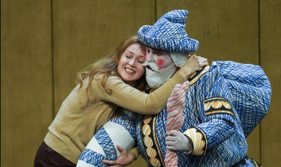 Realmente hábil e inteligente la manera en que Tcherniakov inserta el argumento fabulesco de la ópera, el cuento, en un contexto actual, en el que una madre nos narra, antes de comenzar la música, que vive sola con su hijo que es autista y no habla con nadie, excepto con ella. No conoce a su padre, que ha sido el único amor de su vida. Para hacerle comprender a su hijo cómo se ha llegado a esta situación, recurre a un cuento, pues «sólo los cuentos de hadas son reales para él», el del Zar Saltán. Tanto Bogdan Volkov como Sveltana Aksenova bordan sus papeles como Zarevich y Zarina, respectivamente en un gran trabajo interpretativo bajo la guía del director de escena. De hecho, el elenco fue el mismo que vi hace 6 años en Bruselas, excepto un importante cambio, la soprano Nina Minasyan en lugar de Olga Kulchynska en el papel de Princesa Cisne.