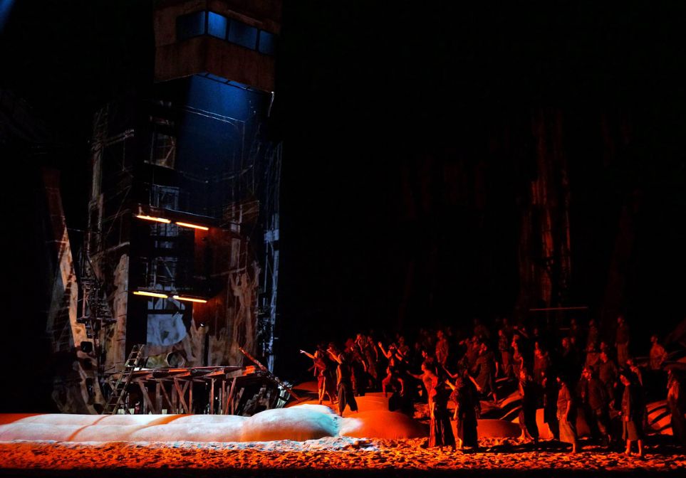 En esta ocasión, el “libro de instrucciones” nos indicaba, que esta producción de El holandés errante transcurre en el puerto de Chittagong sito en Bangladesh y conocido como “El infierno en la Tierra”. Esto del infierno y el ambicioso personaje de Daland dispuesto a vender a su hija al mejor postor suponen los principales “apoyos” o rendijas por las que se justifica –según manifiesta el propio Alex Ollé en el programa de mano- el habitual mensaje de “crítica al mundo actual” que se nos quiere transmitir y, que el citado es el lugar de la actualidad dónde “puede ser posible” la historia protorromántica de amor metafísico, de redención del hombre pecador, que ha desafiado a la naturaleza y por tanto, al Creador, por el amor puro y fiel de una mujer, que son los temas fundamentales de la esta creación wagneriana. Lo cierto es que lo visto durante la obertura resume muy bien el montaje entero: un enorme casco de barco entre las olas embravecidas por la tempestad que, además de resultar atractivo visualmente, nos introduce bien en materia. Una vez pasa el primer impacto visual, uno piensa ¿y?..., el barco termina por no llegar a ningún puerto a pesar de la indudable vistosidad de algunos aparatosos elementos de la escenografía de Alfons Flores, como el barco monumental, el ancla desmesurada, el desierto, el sol cegador, los efectos de la tormenta… Inadecuada, artificiosa y equivocada, sin embargo, la decisión de ofrecer en el enfrentamiento de los coros hacia el final de la ópera (se ofreció la versión en acto único), la parte correspondiente a los marineros del buque fantasma en una grabación. Un dislate.