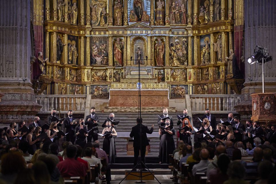 El resultado se pudo disfrutar con verdadero goce en su visita al Festival ofreciendo un programa con obras de tres de los más grandes pesos pesados de la polifonía del siglo XVI, lo que garantizaba de antemano máxima atracción. Así fue desde el inicio del motete responsorial a cuatro voces Sancta et immaculata de Francisco Guerrero, la primera de tres piezas del mismo autor junto a Sanctissima Maria y el Magnificat quarti toni dedicadas a la Virgen, hasta el salmo Laudate pueri a ocho de Palestrina, una de las creaciones corales más sugestivas, por su dificultad y belleza, del gran compositor lacio que cerraba el programa. Entre ambos surgía con elocuente presencia la figura gigantesca del abulense Tomás Luis de Victoria con su Salve y la Missa Salve, ambas a ocho voces.