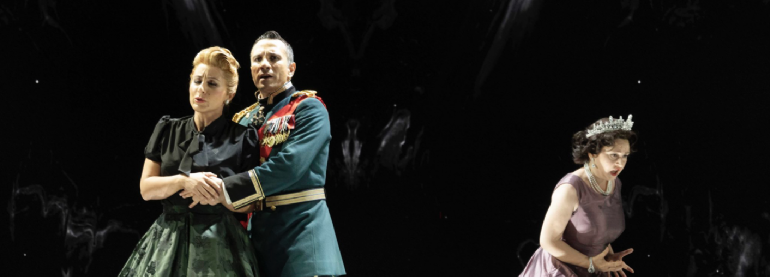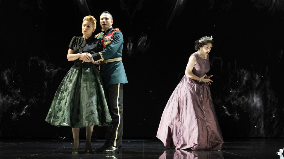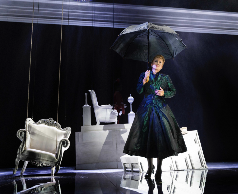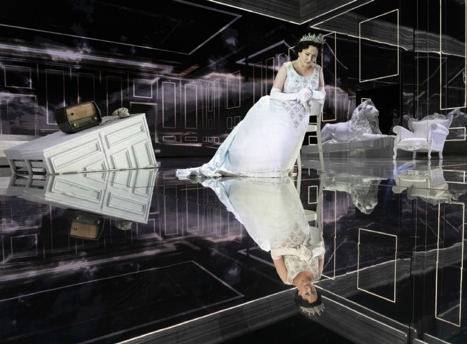 La puesta en escena de Davide Livermore con escenografía de Gió Forma le deja a uno estupefacto. En el escenario vemos a la reina Isabel Segunda, no la primera, parece ser después de la Segunda Guerra Mundial, aunque no subió al trono hasta 1952, ya que vemos aviones Spitfire en las agobiantes proyecciones, así como un ambiente post bélico. La posible explicación de la presencia constante de un imponente ciervo puede ser - para los que hemos visto la serie The Crown- aquél de cornamenta especial que logró cazar la soberana, muy aficionada a las prácticas cinegéticas, en su finca escocesa de Balmoral y que le daría suerte eterna. En fin, ver a Matilde cantar su bellísima aria como un trasunto de Mary Poppins sólo ejemplifica adecuadamente la cantidad de tonterías y ridiculeces que se realizaron sobre el escenario en perfecta y delirante comunión con unas proyecciones agobiantes, caóticas, a granel, sin sentido dramático ni lógica alguna, además de ingratas para la vista. Un dislate.