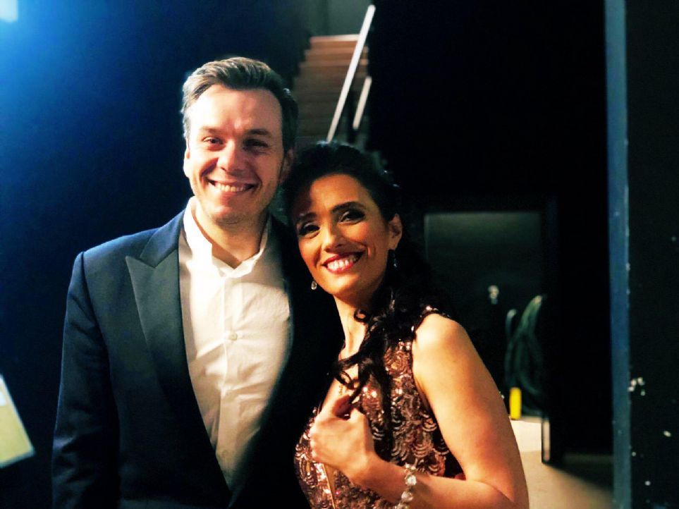 En el repertorio italiano Benjamin ya ha incorporado grandes roles como Rodolfo de la bohéme, y con su «Gélida manina» nos deleitó en la parte final del concierto, mostrando un canto siempre elegante y controlado, y con un Do en la speranza que hace que en su voz suene siempre fácil, sin esfuerzo. Así como en el dúo «O soave fanciulla», donde volvió a mostrar su firmeza en la emisión, y una gran complicidad, ya comentada con la soprano albanesa, donde ambos no se limitaron sólo a cantar, sino que interpretaron para mayor deleite del público. Su propina fue la gran aria de Nemorino «Una furtiva lagrima», que en él no suena triste como tantas otras veces, sino esperanzadora, alegre, pero a la vez conmovedora. Finalizaron ambos con el brindis de La traviata, que Ermonela Jaho ya ha cantado con gran éxito en todo el mundo y que a Benjamin Bernheim le acaba de encumbrar en toda una Scala de Milán, finalizando un concierto que quedará en la memoria de quienes pudimos acudir.