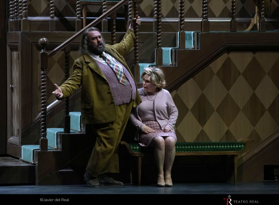 Madrid, 28-IV-2019. Teatro Real. Falstaff (Giuseppe Verdi). Roberto de Candia (Sir John Falstaff), Simone Piazzola (Ford), Joel Prieto (Fenton), Christophe Mortagne (Dr. Caius), Mikeldi Atxalandabaso (Bardolfo), Valeriano Lanchas (Pistola), Rebecca Evans (Miss Alice Ford), Ruth Iniesta (Nanetta), Daniela Barcellona (Mistress Quickly), Maite Beaumont (Miss Meg Page). Coro y Orquesta titulares del Teatro Real. Dirección musical: Daniele Rustioni. Dirección de escena: Laurent Pelly.