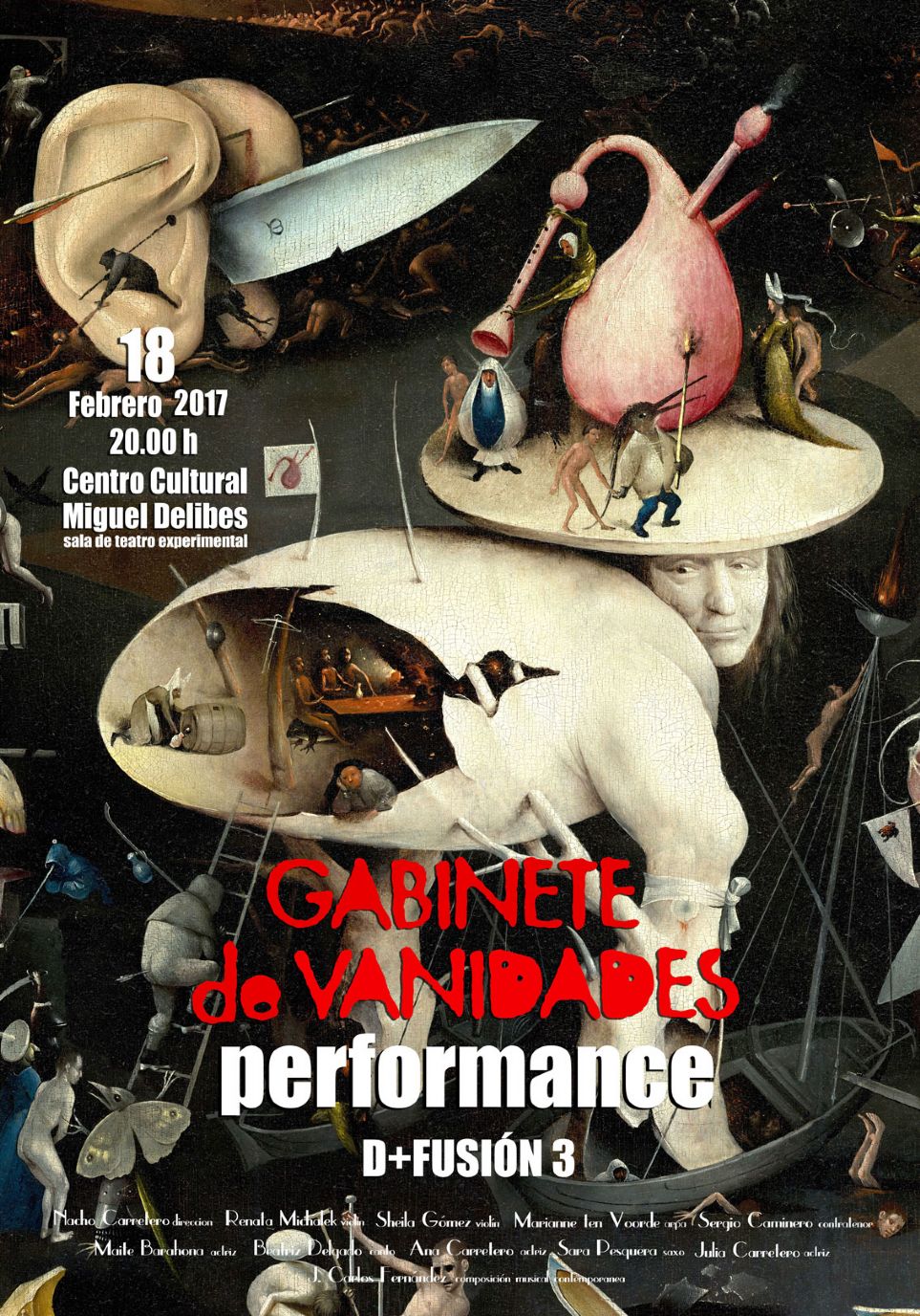 La música, la imagen y una escenografía impactante son las bases del Gabinete de Vanidades, espectáculo que dirige Nacho Carretero. “La idea nace de la propuesta del Auditorio de Valladolid para el ciclo Delibes + Fusión y contaremos con las violinistas Renata Michalek y Sheila Gómez, en una propuesta en el aspecto musical realizada por ellas, que combina la música con otras artes”, comenta el director, escenógrafo y guionista. Precisamente la violinista Renata Michalek -instrumentista de la OSCyL- fue la que le propuso a Carretero trabajar con la música de Prokofiev, Bartók y Tartini, y él le respondió que “podían representar los pecados capitales, en base al cuadro El jardín de las delicias de El Bosco”.