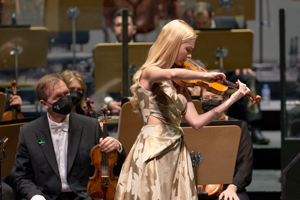 Sevilla, Teatro de la Maestranza. 20-1-2022. Real Orquesta Sinfónica de Sevilla; Anastasia Petryshak, violín; Giuseppe Finzi, director. Programa: Fantasía sonora nº 3 de Rafael Cañete Celestino; Tzigane, rapsodia de concierto para violín y orquesta de Maurice Ravel; Introducción y rondó caprichoso, Op. 28 de Camille Saint-Saëns; Fuentes de Roma, poema sinfónico para orquesta de Ottorino Respighi; y Pinos de Roma, poema sinfónico para orquesta de Ottorino Respighi.