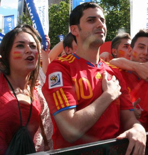 Es costumbre que, en los momentos previos al comienzo de un partido de fútbol internacional, se interpreten los himnos de los equipos en liza. Es una ocasión perfecta para que las cámaras de televisión recorran los semblantes reverdecidos de orgullo de los jugadores de ambos equipos mientras lo interpretan o, como el caso del Himno Español, que no tiene letra, lo tararean -o más bien "lalalean". Pues bien, los españoles con frecuencia observamos, no sin cierta envidia que, cuando suenan los demás himnos, no sólo son interpretados por los deportistas, sino por el público enfervorecido que, voz en grito, lo canta de memoria, sin error y, enmascarado en su gran número, bien afinado.