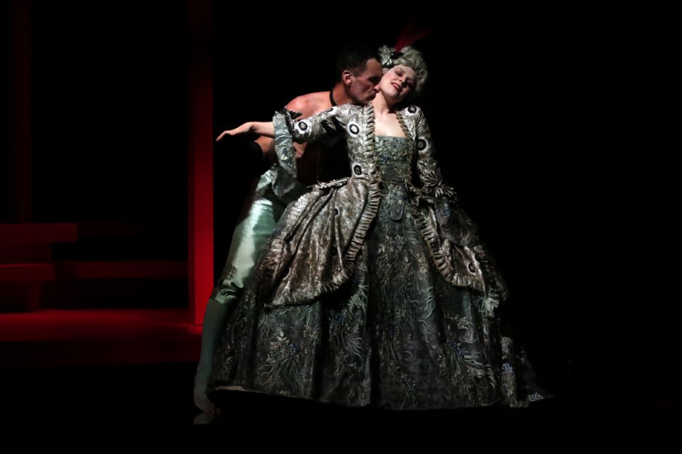 Tanto la puesta en escena de José Luis Arellano sobre escenografía de Pablo Menor Palomo -una plataforma rectangular con paredes transparentes que se beneficia de una magnífica iluminación de David Picazo- como el bello vestuario de época a cargo de Ikerne Jiménez, que contrasta con la modernidad de la escenografía, junto con la implicación de los cuatro solistas y el actor y bailarín, también ayudante de la dirección de escena, Andoni Larrabeiti, contribuyeron en una magnífica labor de equipo a una interpretación amenísima, divertida, ágil y dinámica, como corresponde, de la deliciosa obra de García.