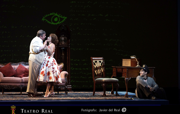 Il Postino (Daniel Catán), Madrid, Teatro Real, 17-7-2013. Leonardo Capalbo (Mario Ruoppolo), Vicente Ombuena (Pablo Neruda), Sylvia Schwartz (Beatrice), Cristina Gallardo-Domás (Matilde Neruda), Nancy Fabiola Herrera (Donna Rosa). Dirección musical: Pablo Heras Casado, Dirección de escena: Ron Daniels. Escenografía y figurines: Ricardo Hernández.