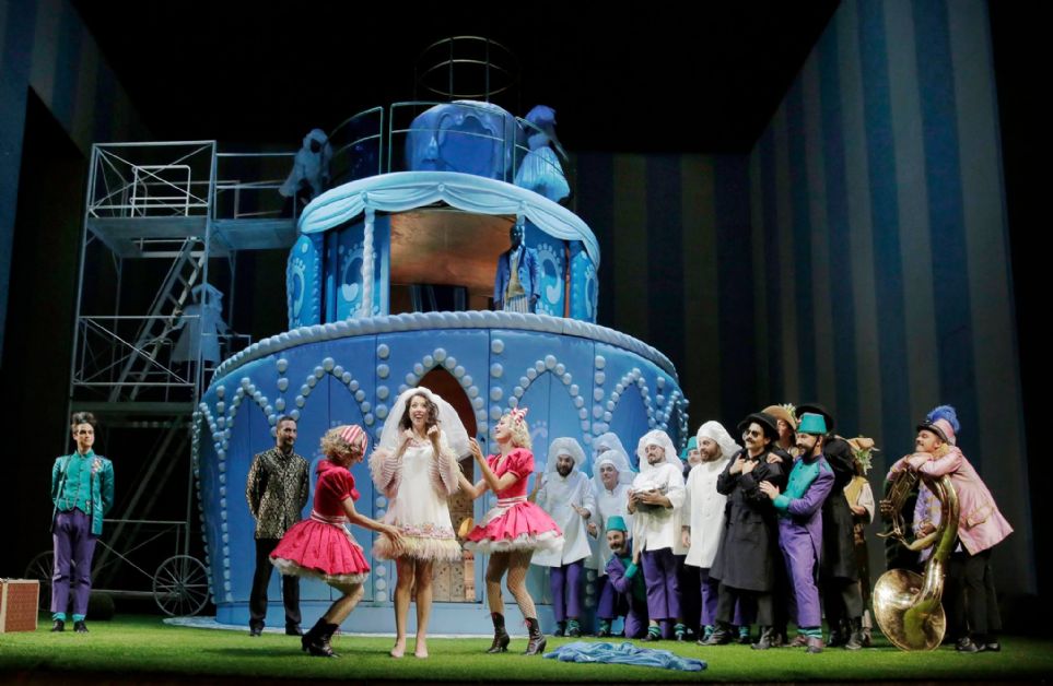 El montaje de Rosetta Cucchi nos lleva por el terreno del cuento, de la fábula con una escenografía (a cargo de Tiziano Santi) basada en una enorme tarta nupcial llena de colorido, donde vive Adina y en la que aparecen diversos personajes de cuento que salen y entran. Desde el primer momento sabemos que Adina, carina y encantadora, terminará en plena felicidad, en ningún momento pensamos que la tragedía pueda aflorar y se pasa de soslayo por la ambigüedad de la trama, en la que el enamorado Califo que va a ser su esposo y con quén vive, resulta ser, finalmente, su padre. El público entra perfectamente en el juego de la amabilidad, de la ligereza, de la cordialidad y empatiza con Adina desde el primer momento. A ello contribuye la interpretación de Lisette Oropesa, con un tono ingenuo, naïf, infantil, una muchacha carina y encantadora con la que, es preciso insistir, se identifica totalmente el público. Asimismo, en lo vocal, siempre sensible y refinada, tradujo brillantemente las dos escenas “Fragolette fortunate” y “Dove sono? Ancor respiro?” de gran vuelo virtuosístico y con las que Rossini garantizaba el lucimiento de esa ignota primadonna tal y como le requería el comitente de esta ópera. Notable la prestación del tenor surafricano Levy Sekgapane, ganador de importantes concursos de canto, entre ellos el Operalia y que demostró una deslumbrante facilidad en la zona alta, disparando agudos y sobreagudos con una despampanante facilidad, desahogo y squillo. El timbre, asimismo, es grato, aunque más bien pequeño y fraseó con arrojo y efusión especialmente en su gran aria  “Giusto Ciel, che i dubbi miei” y en el gran Cuarteto -también compuesto ex novo por el Maestro-, que constituye el ápice de la partitura. Menos interés tuvo el Califo de Vito Priante, más plano en lo vocal, de medios vocales muy modestos y con apreturas en los agudos, aunque bien implicado en el montaje en la faceta intepretativa. Más que cumplidores Matteo Macchioni y Davide GianGregorio.