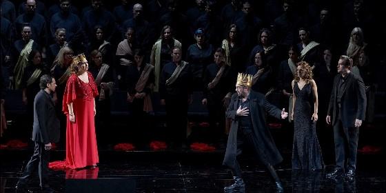 Un tanto decepcionante resultó la labor de la soprano Anna Pirozzi. Fue extraño apreciar tal falta de calor y de garra en una cantante italiana. En lo vocal, la voz resulta desguarnecida en la franja centro-grave, pero gana mucho timbre y metal en la centro-aguda con sonidos restallantes en esa franja, aunque las notas más extremas resultaron abiertas y un tanto estridentes. Cercano al grito fue el Re bemol 5 conclusivo de la escena del sonambulismo. La agilidad, tanto la di forza de la cabaletta “Or tutti sorgete” o la del dúo del acto tercero, como la intrincadísima del brindis, se resolvió de forma muy trabajosa. El fraseo, y es algo muy grave en un papel como este, -tanto como la falta de garra y de grinta-, fue mortecino, sin vida, sin contrastes, ni incisividad. No se puede decir, ni mucho menos, que la soprano italiana cante mal. Tiene un buen concepto de la línea, pero es un canto monótono, sin acentos, ni claroscuros, ni aristas, que selló una aburrida intepretación de papel tan tremendo y de tanta fuerza teatral. Sólo la famosa “hambre de tenor” que tiene el público cuando llega en el último acto el aria de Macduff “Oh figli miei… Ah la paterna mano” puede explicar la ovación que recibió el tenor neoyorquino Brian Jadge, de timbre escasamente atractivo, emisión gutural y agudos apretados, aunque, al menos, mostró esa preparación musical que suelen tener los cantantes estadounidenses. Tampoco pasó de discreto el Banquo de Ildebrando D’Arcangelo que cantó bien, como es habitual en él, pero sin especiales detalles como fraseador y cuyo material, falto de rotundidad, caudal y amplitud, es más propio de Mozart o Rossini, que de Verdi. Entre los secundarios destacó la sonoridad de Fernando Radó y la finura de Raquel Lojendio.