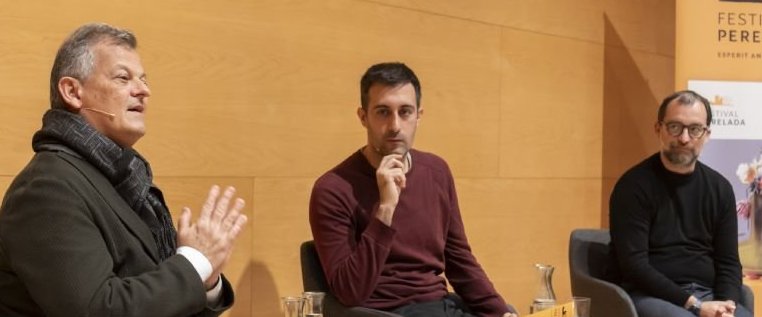 Joan Magrané (en el centro), Francesc Prat y el director artístico del Festival de Perelada, Oriol Aguilà (a la izquierda), en la presentación de Tenebrae Responsoria