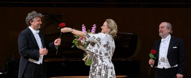 Así, después de haber actuado en las salas de concierto más afamadas de Europa interpretando el Italienisches Liederbuch, de Wolf, este trio de artistas ha vuelto en gira -marzo/abril de 2022- a los escenarios más importantes de Europa con un repertorio muy bien hilado de canciones de amor, Liebeslieder, de Schumann y Brahms alternados por grupos de entre 7 y 8 canciones cada uno, actuando en esta velada como debutantes en Ibermúsica, gracias a lo cual no hubo dispersión de autores y estilos, y sí un precioso hilo conductor, cosa que a veces no ocurre en los recitales de Lied, que en realidad, -aunque con intérpretes emparejados, más el pianista-, fue a lo que asistimos.