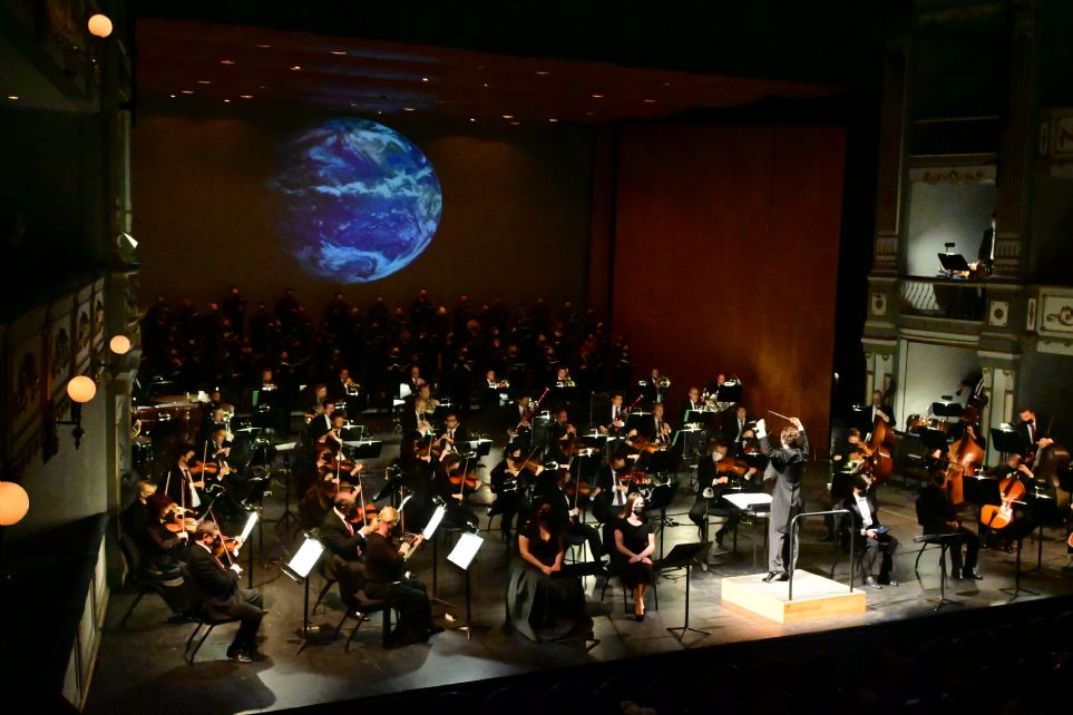 Málaga. 26-III-2021. Teatro Cervantes. Orquesta Filarmónica de Málaga [OFM] Coral Carmina Nova. Solistas: Mónica Campaña, Marina Pinchuk, José Manuel Sánchez, Rodrigo Álvarez y Nur Bió. Director: José María Moreno. Obra: El hombre armado (Misa por la paz) de Karl Jenkins.