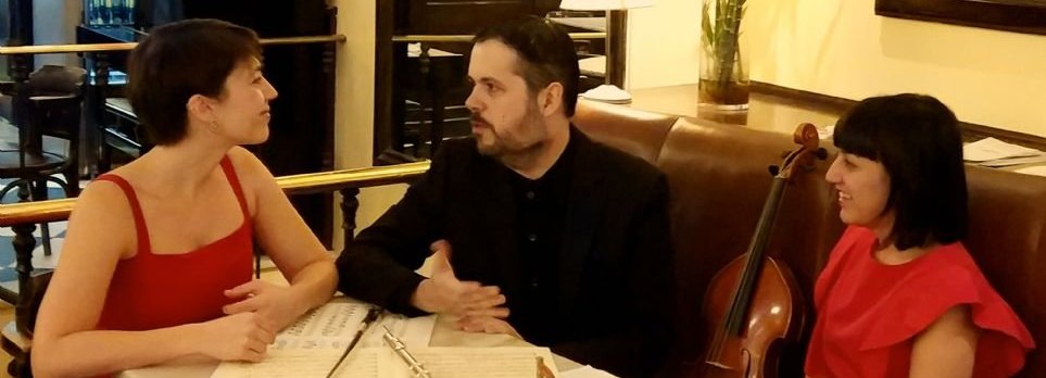 El primero en intervenir es el Trío Clepsidra formado por Alicia Garrudo, flauta, Daniel Lorenzo, viola, y Reyes Gómez, arpa. El hecho de que coincidieran en diferentes formaciones, entre ellas la Orquesta Sinfónica de Castilla y León, y que hayan participado en ciclos como el de Música del Siglo XX, que organiza el Conservatorio de Salamanca, sirvió para que estos tres intérpretes se unieran para hacer música, tal y como pone de manifiesto Alicia Garrudo: “Llevamos toda la vida tocando juntos en diferentes formaciones, aunque comenzamos Reyes y yo que nos pusimos de acuerdo para estrenar en España la obra de Brotons Cielos coloreados, y como existe mucho repertorio para flauta y arpa decidimos formar un grupo”.