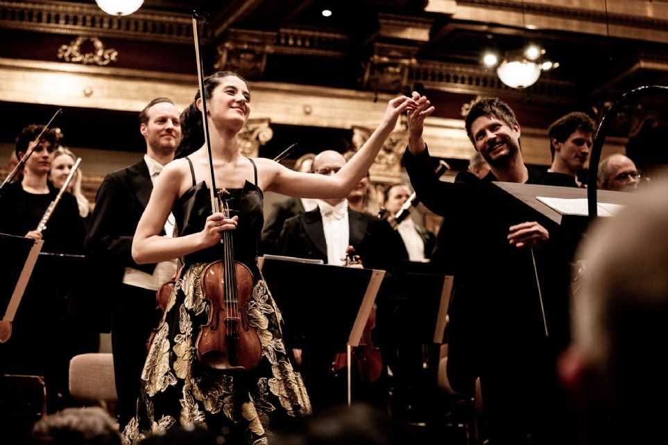 La respuesta enfervorizada del público no se hizo esperar. María Dueñas, siempre dispuesta a sorprender, lo hizo una propina elegantísima y muy novedosa: el Chant de Veslemöy, una preciosa canción popular noruega del cuasi desconocido compositor y violinista Johan Halvorsen. Éste compuso su primer concierto para violín en 1908 para la virtuosa canadiense Kathleen Parlow, y además le hizo el arreglo para violín solo de la canción. Tras mas de un siglo olvidado, se descubrió en 2015 en los archivos de la canadiense, y el pasado mes de noviembre, María Dueñas y Yannick Nézet-Séguin interpretaron ambas obras en Montreal. Aquí, la granadina desprendió musicalidad a raudales en la encantadora melodía transportándonos a una fría noche noruega, mostró su perfecta posición con el violín y demostró un control absoluto del instrumento en una pieza que tras su aparente sencillez encierra una gran complejidad técnica -toda ella en pianísimo y tocada desde muy abajo con la parte superior del arco-. Un año después volvió a dejar al público del Musikverein a sus pies.