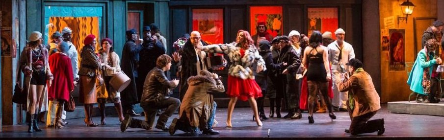 Nosotros no hubiéramos elegido a Erika Grimaldi para encarnar a Mimí. Es una cantante que puede hacer el rol perfectamente, como se demostró en la producción y se ve en su agenda profesional. Sin embargo, creemos que su timbre no refleja bien la dulzura inherente al personaje, y su manera de interpretar, nada propensa al canto ligado, dúctil y templado desde la ternura, se alejaron un poco de la imagen canora que tenemos de Mimí. Quizás por ello y por la manera de dirigir la obra de Marzio Conti, la versión resultó bastante fría y tardó en conectar con el público. Fue a partir del tercer acto, con una magnífica participación de la soprano, cuando la función comenzó a adquirir cierto interés interpretativo y empatía dramática. Efectivamente, Marzio Conti no acertó acompañando ni con el estilo de la obra. Sí se percibe en su trabajo un esmero por cuidar la afinación y sonoridad de la orquesta, la Oviedo Filarmonía, algo que se agradeció y que resulta positivo, pero es obvio que Conti tuvo problemas para respirar con los cantantes, que notaron la falta de apoyo desde el foso. Esto generó cierta inconsistencia métrica de fondo que lastró la función. También hubo cierta sensación de superficialidad y precipitación. Los fragmentos y situaciones musicales deben llegar a su debido tiempo y estar expresados con claridad. Al contrario, la música de Puccini se mencionó como de pasada, sin profundizar en su sentido dramático. Después también estuvo el estilo, al que pensamos que le faltó calidez y romanticismo, y le sobró un contraste dinámico demasiado brusco. Demasiadas veces sentimos los cambios dinámicos como verdaderos fogonazos. Creemos que con una dirección musical más estable, homogénea y profunda la versión habría mejorado bastante.