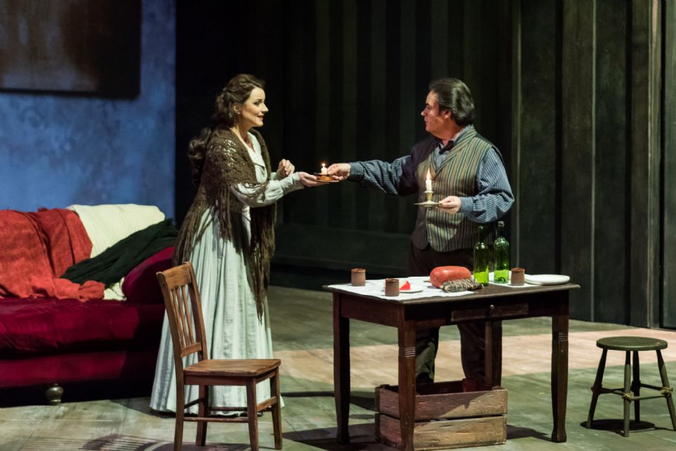 En cuanto a las voces, destacó el timbre enormemente atractivo de Anita Hartig cuyo material vocal se proyectaba resplandeciente hasta la última butaca del teatro. Además, la calidad de su fraseo y canto de algo vuelo lírico se revelaron ideales para su recreación de un rol protagónico en el que se encontraba ciertamente cómoda y al que sólo le faltó un punto de calidez y calado expresivo en los dos últimos actos. Por su parte, el Rodolfo de José Bros convenció con su acostumbrada línea de canto elegante, musical y colmada de buen gusto. El tenor catalán ha ensanchado notablemente su voz en los últimos años (resulta revelador compararla con sus Elvinos, Nemorinos, Edgardos o Devereux) que ahora ha adquirido un importante volumen si bien aquí la tesitura del personaje le llevó al límite, mostrando evidentes dificultades en su ascenso al registro agudo, que lograba no sin generar gran tensión y aparente desfonde físico.
