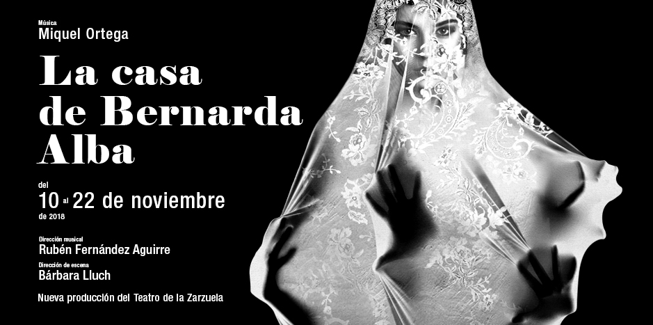 El Teatro de la Zarzuela estrena el próximo 10 de noviembre La casa de Bernarda Alba, una nueva producción del teatro de la calle Jovellanos de la ópera en tres actos del compositor y director de orquesta español Miquel Ortega y libreto de Julio Ramos, basado en la obra original de Federico García Lorca. Se presenta la obra en una nueva versión para orquesta de cámara, dirigida en lo muscial por el propio Miquel Ortega. La dirección de escena es de Bárbara Lluch, la escenografía de Ezio Frigerio, el vesturario de Franca Squarciapino y la iluminación de Vinicio Cheli. En el reparto encontramos a Nancy Fabiola Herrera en el papel de Bernarda Alba, Carmen Romeu como Adela, Luis Cansino como Poncia, Carol García en el papel de Martirio, Marifé Nogales en el de Amelia, Belén Elvira como Magdalena, Berna Perles como Angustias, Milagros Martín es la Criada y Julieta Serrano, María Josefa. Hay ocho funciones previstas a lo largo del mes, los días 10, 11, 13, 15, 17, 18, 20 y 22 de noviembre de 2018, siempre a las 20 horas salvo domingos [18:00].