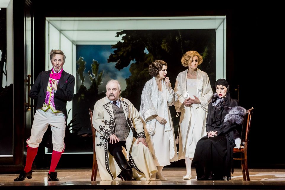 La puesta en escena de David Pountney, originaria de 2015, sirve a la obra y destila elegancia y belleza. Como expresa en la entrevista contenida en el programa de mano editado por la Ópera Nacional polaca, el director de escena británico traslada la acción a los años veinte del siglo pasado, una época, al igual que la que enmarca el libreto -siglo XVIII-, en la que Polonia era independiente y feliz. El montaje se vale, asimismo, del lenguaje universal de la pintura. Desde el telón inicial con “Milagro en el Vístula” de Jerzy Kossak, pasando por “Las cuatro estaciones” de Boucher, que enmarcan los juegos de año nuevo de las chicas en ese hermoso comienzo del segundo acto perfilado con gran gusto y refinamiento en la puesta en escena. Finalmente, las cuatro pinturas amorosas de Joseph-Marie Vien encuadran apropiadamente los enredos del tercer acto, pues las chicas se esconden en los cuadros y pueden escuchar sin ser vistas, las confesiones de amor hacia ellas de los dos hermanos. El montaje apuntala la inteligencia de las muchachas, que saben lo que quieren y van a conseguirlo. Una producción, por tanto, rara avis en los tiempos que corren, pues sirve a la obra y destila buen gusto, sutileza y distinción.