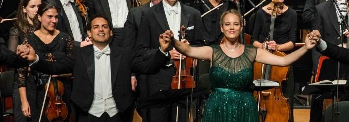 Hace algunas semanas, con motivo de su regreso en Múnich a los escenarios tras cancelar varias funciones previas, nos referimos a Flórez aludiendo a su compleja encrucijada vocal, cuando ya no puede estar a la altura de sí mismo en sus mejores días y cuando no termina de dibujarse un horizonte claro para su vocalidad como lírico pleno. Poco después de esas funciones en Múnich, Flórez se vio obligado a cancelar de nuevo, esta vez las funciones de Le comte Ory en la Scala, en cuyos ensayos había participado con normalidad. Podría pensarse en los avatares de la salud, pero también es verosímil preguntarse por el desgaste de un repertorio cada vez más pesado y cada vez menos ligero. Sea como fuere, esta Favorite de Salzburgo era por tanto de nuevo su regreso a los escenarios. Su labor, generalmente convincente, fue de menos a más. Comenzó un tanto timorato con “Un ange, une femme inconnue”, tanteando el agudo sin encontrase plenamente cómodo y trasluciendo una tensión no disimulada. Mucho más resuelto y firme se mostró ya en el “Oui, ta viix m´inspire”, tan convincente por acentos como por nitidez del agudo. Flórez se mostró indudablemente más cómodo en esta escritura rápida y vigorosa, casi de matriz rossiniana. Su buena labor fue in crescendo en los dúos con Garanca y en los concertantes. Lo mejor de su labor esa noche fue sin duda el remate con el “Ange si pur”, ya de vuelta por sus derroteros habituales, exultante y pleno en el agudo. Flórez ya había debutado esta parte previamente en París y en Monaco, siempre en una versión en concierto. A decir verdad no observamos que la voz de Flórez haya cambiado apenas: levemente más presente en el centro, espléndidamente proyectada, pero en realidad ahora más corta en el agudo. De hecho, al sobreagudo asciende a veces titubeante, sin el desparpajo e insultante facilidad de antaño. Las notas siguen estando ahí y comparecen con irregular soltura, ora más tirantes, ora más brillantes. Sigue siendo, en suma, el instrumento de un ligero. Sorprende así que en su horizonte se dibuje una trayectoria que no pasa por Mozart sino por Meyerbeer, que no pasa por Donizetti sino por Gounod.