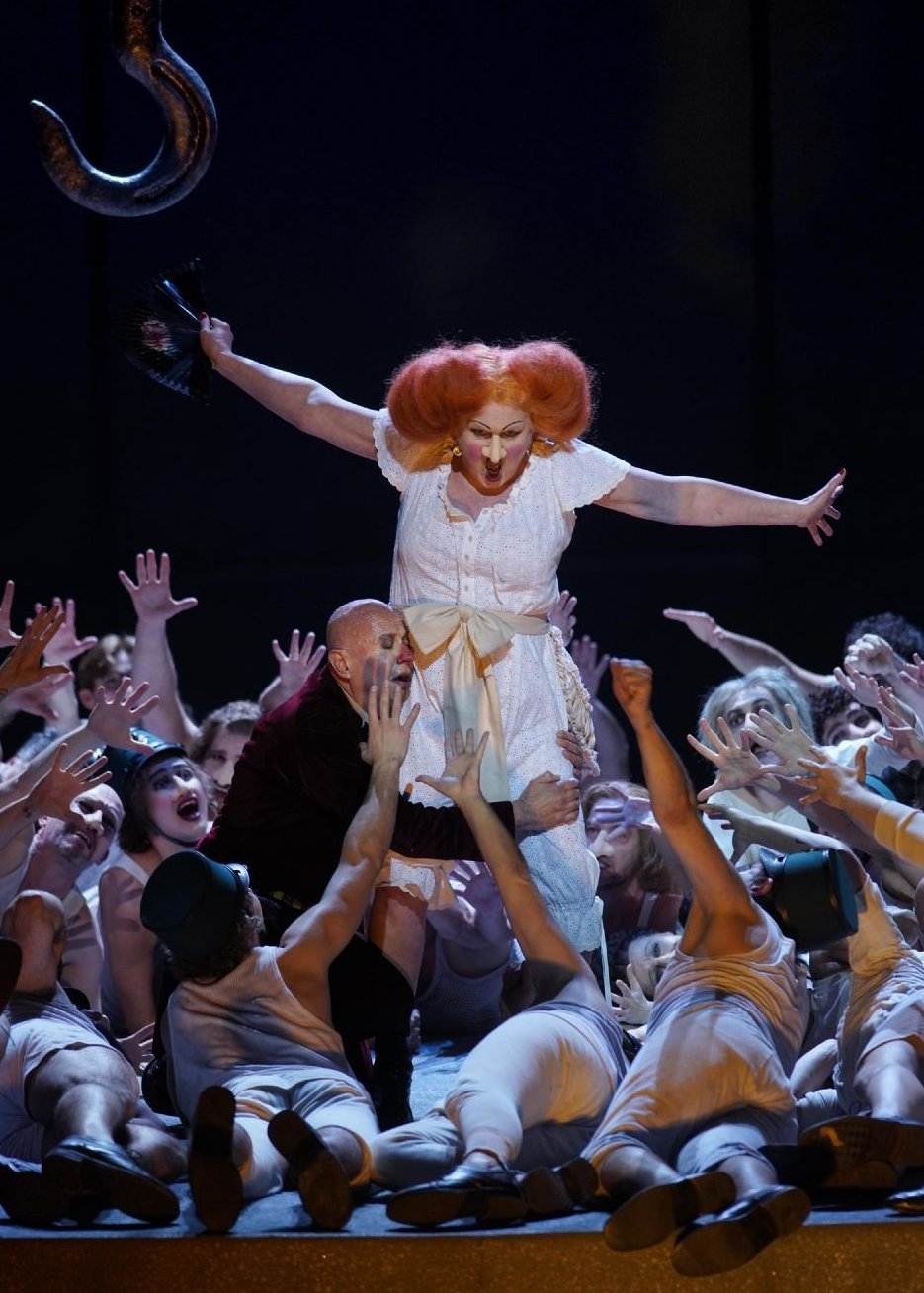 Madrid, 17-III-2023, Teatro Real. Nos-La Nariz, op. 15 (Dmitri Shostakóvich). Martin Winkler (Platón Kuzmitch Kovaliov), Alexander Teliga (Barbero Yakovlevivh/Encargado del periódico/Médico), Vasily Efimov (Iván/ jefe adjunto de policía/Caballero/estudiante/eunuco), Andrei Popov (Inspector de policía), Dmitry Ivanchev (La nariz/Yarishin/eunuco) y, entre otros, Ania Juric, Agnes Zwierko, Iwona Sobotka, Margarita Nekrasova, David Alegret, Josep Fadó, Ihor Voievodin, Isaac Galán, Roger Padullès. Orquesta y coro titulares del Teatro Real. Dirección musical: Mark Wigglesworth. Dirección de escena: Barrie Kosky. Reposición de la dirección de escena: Johannes Stepanek.