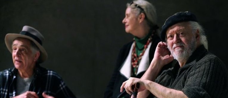 El actor Pep Molina (izquierda) con la actriz Vicky Peña, recién galardonada con la Medalla de Oro al Mérito en las Bellas Artes 2023, y el actor Mario Gas en un ensayo de La rosa del azafrán en el Teatro de la Zarzuela