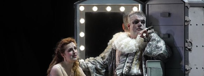 El montaje de Giancarlo del Monaco vuelve a manfestarse atinado con sus colores oscuros, grises para la parte de realidad y el color que emerge para la parte ensoñadora, en la que se destaca la fascinante pantomima, una auténtica filigrana teatral en esta puesta en escena, que también demuestra la capacidad de Del Monaco para desarrollar la actividad y movimientos de los demás personajes, fuera de la acción principal. El personaje de Puck, particularmente complejo en su desdoblamiento realidad-parte onírica, manifiesta desde el principio su inestablidad psicológica, con esos temblores de su cuerpo, así como la violencia larvada, que se hace manifiesta con Cecilia hasta culminar en el asesinato del final, que no vemos explícito en escena, como sí ocurría en la ópera de Montemezzi estrenada un año antes que las golondrinas, L’ amore dei tre re, que recientemente he reseñado para CODALARIO en su reposición en La Scala de Milán. Espléndidos los figurantes, equilibristas, malabaristas, que nos recuerdan ese deslumbrante Mundo del circo, hoy día prácticamente desaparecido.