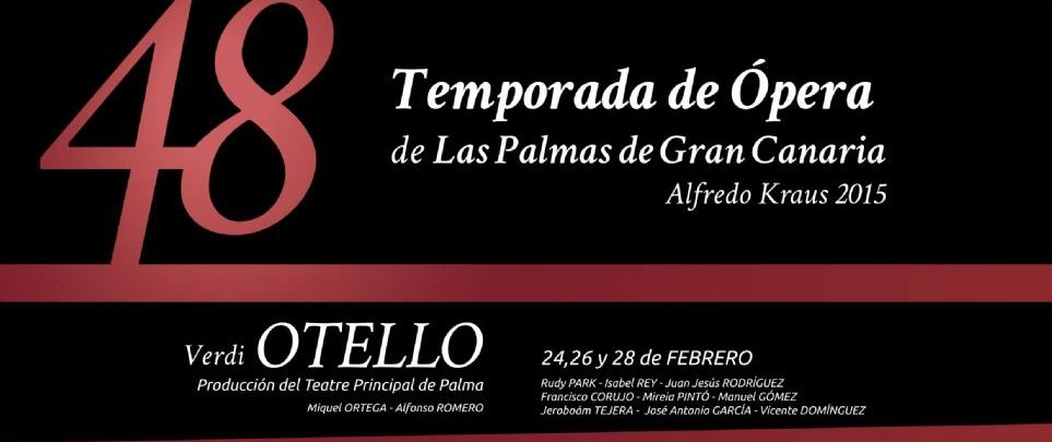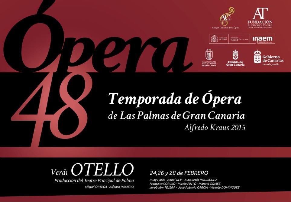 La 48º temporda de ópera de la Asociación de Amigos Canarios de la Ópera (ACO) en Las Palmas, la primera bajo dirección artística de Ulises Jaén, en reemplazo de Mario Pontiggia, se extenderá del 24 de febrero al 31 de mayo de 2015 en el Teatro Pérez Galdós. Su programación comienza este mes de febrero con tres funciones (martes 24, jueves 26 y sábado 28) del Otello de Verdi, protagonizado por el tenor coreano Rudy Park, junto a la soprano Isabel Rey como Desdémona y el barítono Juan Jesús Rodríguez como Yago. La dirección musical correrá a cargo de Miquel Ortega y la dirección escénica lleva la firma de Alfonso Romero.