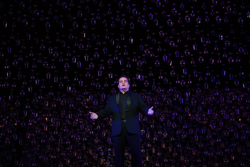 Fue meritorio el trabajo de Joan Anton Rechi. Alrededor de 3.000 copas de plástico que parecían de reluciente cristal engalanaron la ópera de principio a fin, de diferentes formas, coloreadas siempre con buen gusto por la luz de Alfonso Malanda. Fue interesante la idea, que pegaba además con la dramaturgia. Menudo trabajo colgar tantas copas... Aunque no todo funcionase igual de bien, los artistas realizaron un trabajo soberbio actuando, bailando, cantando. Qué gran labor por cierto la del Coro de la Ópera, en una actuación difícil que obligó a sus componentes a cantar realizando exigentes movimientos escénicos, y qué privilegio para el conjunto contar con dos componentes como Estefanía Álvarez y Ana Belén León, soberbias en sus respectivos papeles. Fue muy llamativo el carisma escénico de Ana Belén León, que cuidó en todo momento hasta el más mínimo detalle actoral.