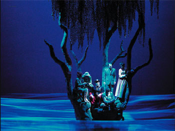 Al igual que resulta difícil encontrar artistas que hagan de un concierto algo especial, las funciones líricas realmente emotivas e inteligentes también son escasas. Es por ello que la producción de "Los sobrinos del capitán Grant" que el martes se estrenó en el Campoamor dentro del Festival de Teatro Lírico Español de Oviedo adquiere un valor enorme y de gran trascendencia. El montaje es antiguo, del 2001, producido por el Teatro de la Zarzuela, con la dirección escénica Paco Mir, conocido componente de Tricicle que realiza una versión realmente inteligente de la obra, una verdadera obra maestra que hace que el público se divierta como pocas veces hemos visto en un teatro. Mir convierte el popular género lírico en un extraordinario aluvión de color, fantasía y, sobre todo, humor, del bueno e inteligente, que tan poco abunda. Hay que decir que desde su estreno la producción ha evolucionado mucho, independientemente de lo cambiada que ya estaba respecto al original. Fue una pena que el escenario del Campoamor no diera para mostrar en su plenitud toda la producción, lo que obligó al director a eliminar la escenografía de una preciosa corrala que daba inicio al espectáculo. Como también da pena que una producción tan bella se haya representado sólo en tres teatros de España: el de la Zarzuela, el Maestranza y el Campoamor. De cualquier forma y desde cualquier punto de vista, el resultado no puede ser más rotundo. La versión se ha convertido, a nueve años de su creación, en un auténtico clásico del género lírico teatral más genuinamente español, una soberbia interpretación escénica que nadie en su sano juicio se debería perder. Son tantos los detalles de buen gusto y acusada comicidad a lo largo de toda la obra que daría para un libro comentarlos. Valga la recomendación más encarecida de que nadie que tenga la oportunidad deje de verla. Son dos tres horas de risas y sonrisas continuas, de lo bien que se lo pasa uno, sin exagerar. Es sabido que, aunque Caballero es el compositor más prolífico del género (compuso más de doscientas zarzuelas, a juzgar por el catálogo elaborado por Nuria Blanco Álvarez, investigadora de referencia en lo que se refiere al compositor murciano), "Los sobrinos del capitán Grant" no es una obra en la que la música, aunque de gran calidad, se convierta en la única y mayor protagonista.