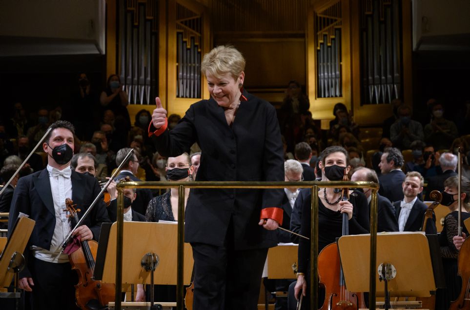 Gran éxito con generosas ovaciones del público. En el capítulo propinas compareció la «Viena genuina» con Johann Strauss y su Cachucha-galop, op. 97 interpretado con ágil autenticidad por Alsop y la orquesta, que se despidieron con una composición de 2013, la Pussy-(r)-Polka de Gerhard Winkler, pieza llena de disonancias que evocan «los gritos de protesta anárquicos del punk», en la que los músicos de la orquesta se divirtieron mientras demostraban su virtuosismo y Marin Alsop asumió una actitud sobre el podio un punto más «desbocada».
