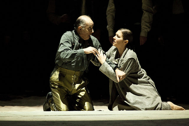 El primer responsable de esta inútil nueva puesta en escena el director de escena Daniele Abbado, sobrino del conocido director, Claudio Abbado, que ya firmara en el pasado otras mas apreciables producciones del titulo verdiano. En esta ocasiòn, complices Alison Chitty, a quien se deben decorados y vestuario, Alessandro Carletti y Luca Scarzella, responsables reciprocamente de la iluminaciòn y de las proyecciones video y Simona Bucci, que se ocupó de los movimientos coreográficos y es un decir, ya que la ópera no tiene ballet. Se ha querido pasar -oh novedad novedosa- de la época y de la historia entre asirios dominadores y judios esclavos, para centrarse en el dolor universal que oprime, indiferentemente, las masas. Conceptos ideales, cuan genéricos, que en todo caso merecerían nueva música y nuevo libreto. Por eso más de uno hubiese preferido asistir a una funcion en forma de concierto. Lo que, además de ahorrar un montón de dinero -las producciones "minimalistas" por pobres no son baratas resultando mas caras de las tradicionales y este caso no debe haber hecho excepcion- permite concentrarse tan solo en la música.