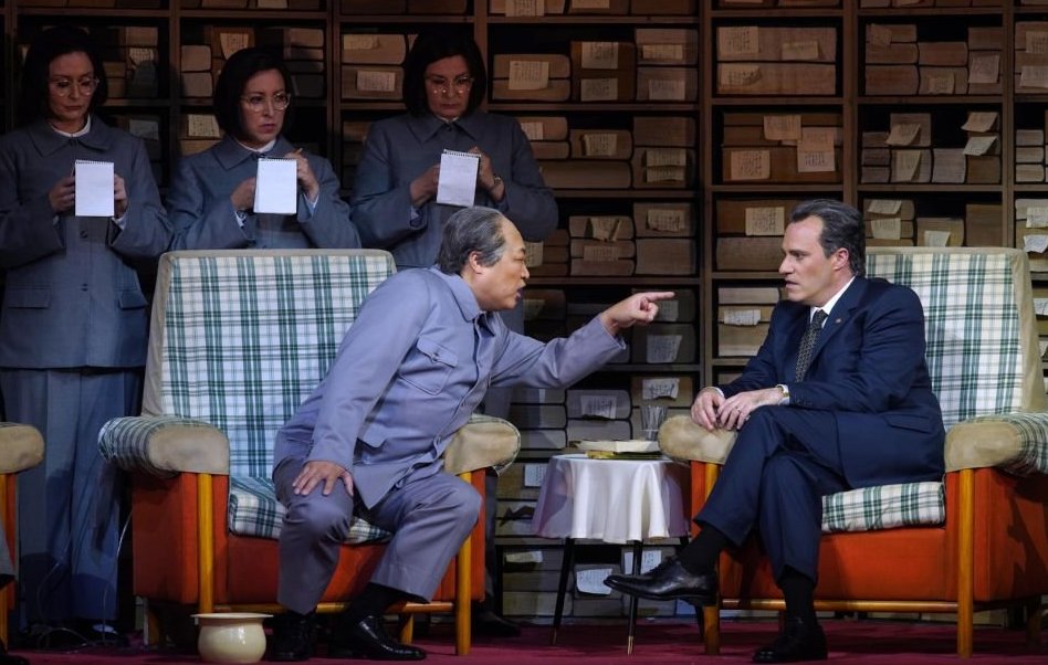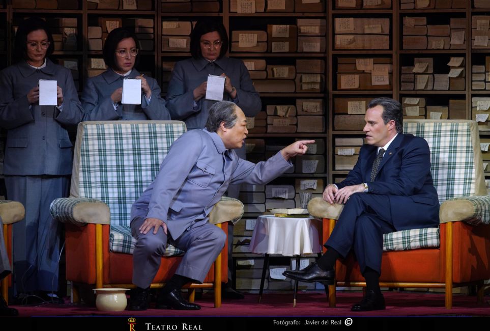 Madrid, 17-IV-2023, Teatro Real. Nixon en China (John Adams). Leigh Melrose (Richard Nixon), Sarah Tynan (Pat Nixon), Jacques Imbrailo (Chou En-Lai), Alfred Kim (Mao Tse-Tung), Audrey Luna (Chiang Ching, Madame Mao), Borja Quiza (Henry Kissinger), Sandra Ferrández (Nancy T’Ang, primera secretaria de Mao), Gemma Coma-Alabert (Segunda secretaria), Ekaterina Antipova (Tercera secretaria). Coro y Orquesta titulares del Teatro Real. Dirección musical: Olivia Lee-Gundermann. Dirección de escena: John Fuljames.