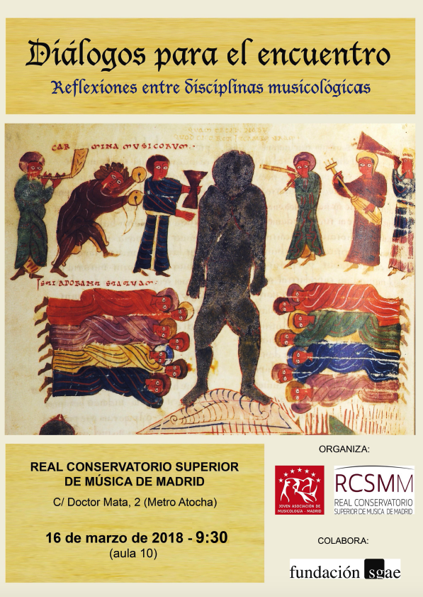 Así se presenta este seminario titulado Diálogos para el encuentro. Reflexiones entre disciplinas musicológicas, que organizan conjuntamente la Joven Asociación de Musicología de Madrid [JAM Madrid] y el Real Conservatorio Superior de Música de Madrid [RCSMM], el cual se llevará a cabo a lo largo de toda la jornada del próximo viernes 16 de marzo, en el aula 10 del Real Conservatorio en su sede de Atocha, con inicio previsto a las 09:30 horas. La entrada es libre y no necesita de inscripción previa. En el siguiente enlace está disponible el programa completo del seminario.