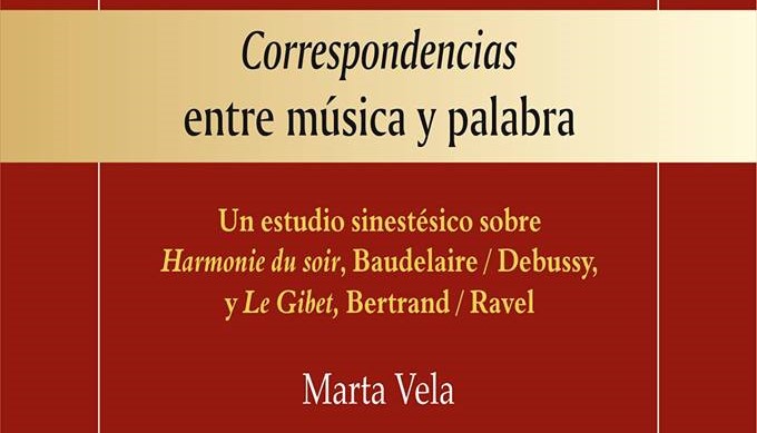 Correspondencias entre música y palabra. Un estudio sinestésico sobre Harmonie du soir, Baudelaire/Debussy, y Le Gibet, Bertrand/Ravel es una monografía de Marta Vela que pretende elucidar las relaciones entre sonido y texto –especialmente, la poesía–, a través de un paradigma de análisis conjunto, basado en la condición simbólica del arte y su representación mediante el recurso de la sinestesia. A partir de diagramas, imágenes, láminas analíticas y ejemplos musicales de Bach, Beethoven, Schubert, Schumann, Liszt, Berlioz, Wagner, Tchaikovsky..., y textos de Petrarca, Shakespeare, Müller, Lord Byron, Mallarmé..., se explican las correspondencias halladas entre ambas manifestaciones artísticas, ofreciendo varios modelos analíticos, de carácter didáctico, a partir de parámetros compartidos en las obras elegidas, Harmonie de soir, de Baudelaire, y Debussy, y Le gibet, de Bertrand y Ravel.