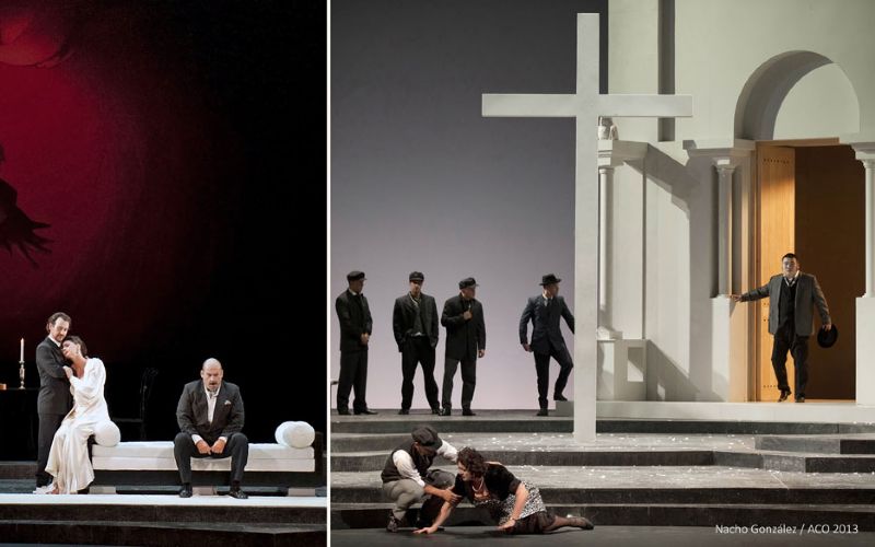 La ópera se estrenó en 1917 y la música, preciosa y de impacto sinfónico, tratando las voces como istrumentos en un continuo canto di conversazione cercano al schprechgesang wagneriano, está claramente emparentado con el de Strauss. Fundamental, en tal sentido, el aporte de la no menos que sensacional Orquesta Filarmonica de Gran Canaria, un conjunto de grandisima calidad, dirigida en este caso por el atento y escrupuloso Eric Hull, interesado en buscar los efectos cromáticos que la brillante paletilla que ofrece Zemlisky, sin perder de vista el escenario. Hull puso toda la pasión mediterranea al servicio de Cavalleria rusticana, ofrecida como plato fuerte de la velada en consideraciòn del 150 aniversario del nacimiento de Pietro Mascagni. Un evento y un autor del que en Italia, desgraciadamente para el público, pocos se acuerdan, menos en los grandes teatros. Parece que para algunos ilustrados managers, si el autor no lleva una equis, una zeta o una y griega en el apellido, no es à la page! Sobran comentarios.