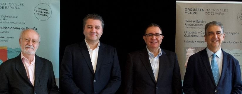 La Orquesta y Coro Nacionales de España presentó ayer en el Auditorio Nacional de Música sus nuevos lanzamientos discográficos, en un acto que ha contado con la participación de algunos de los protagonistas de los discos: el director técnico de la OCNE, Félix Palomero, el director del Coro Nacional de España, Miguel Ángel García Cañamero, el compositor José Luis Turina y el catedrático de musicólogía Ramón Sobrino.