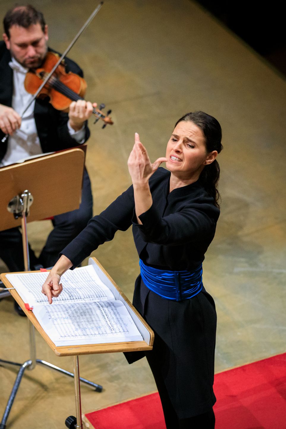 Dirige la orquesta Oksana Lyniv, de quien hemos hablado a menudo en esta revista. Considerada internacionalmente como uno de los directores más interesantes de su generación, en 2020 ha sido premiada por la revista alemana Oper como mejor director de orquesta del año. Además de los numerosos compromisos con el Teatro Comunale de Bolonia, en 2022 y 2023 ha dirigido conciertos con los München Philharmoniker, la Philharmonic Orchestra de Londres, la Orquesta del Teatro Regio de Turín y los Wiener Philharmoniker, por citar algunos. En el verano ha dirigido Medea de Cherubini en la Staatsoper Unter den Linden y ha vuelto al podio de Bayreuth con Der fliegende Hollander.