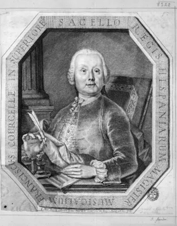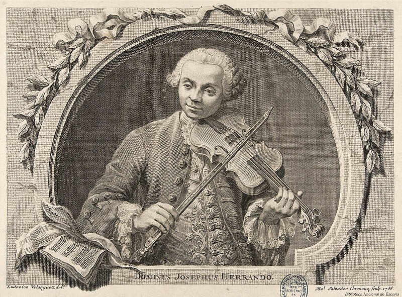 Retrato de José Herrando, grabado calcográfico de Manuel Salvador Carmona sobre dibujo de Luis González Velázquez [1756, Biblioteca Nacional de España].