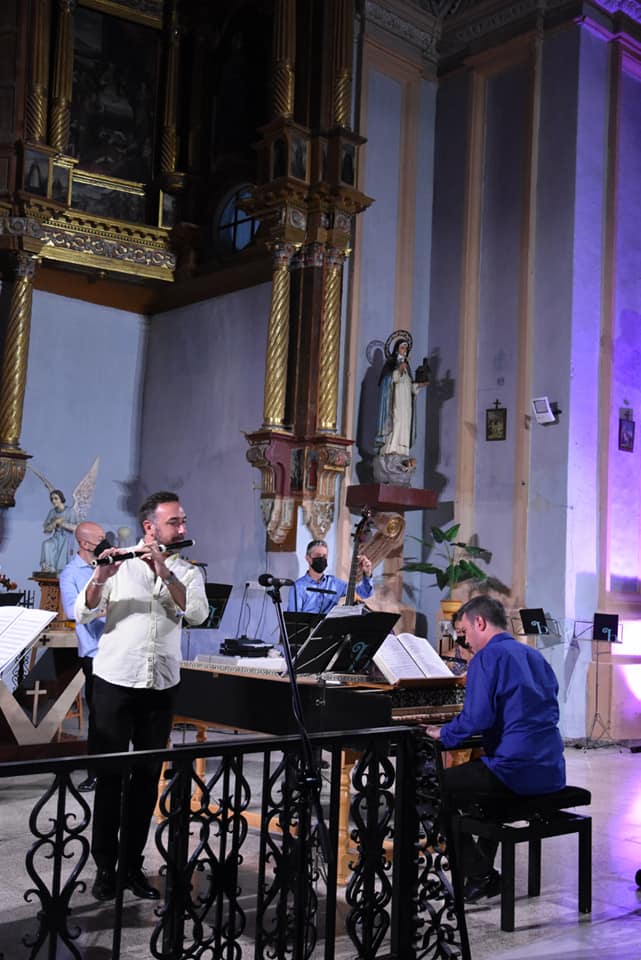 Para terminar, se incorporaron al presbiterio del templo David Antich y Alberto Domínguez con sus flautas de pico estimulando la atención del auditorio por su agilidad en articulación que favorecía la dinámica de diálogo entre ambos y con el resto de la orquesta liderada por el primer violín, Leo Rossi, que servía como elemento de referencia en tal cometido.