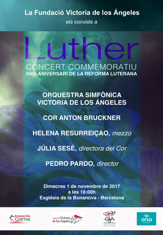 La Orquesta Sinfónica de Victoria de los Ángeles (OSVA) se añade a los actos del 500 aniversario de la reforma luterana con un concierto que se realizará hoy miércoles 1 de noviembre, día de Todos los Santos, a las 18:00 en la iglesia de la Bonanova de Barcelona. Dirigida por el maestro Pedro Pardo, el OSVA interpretará el Concierto de Brandenburgo Nr. 3 y la Cantata Ich habe genug de Johann Sebastian Bach, seguido por Suite Holberg de Edvard Grieg y los dos salmos Gustav Holst, con la participación del Coro Anton Bruckner y la mezzosoprano portuguesa Helena Ressurreiçao que ya debutó en la edición de la temporada pasada dentro del ciclo Tast de Lied del Festival Life Victoria. El concierto cuenta con el apoyo de la Fundación Goethe, la Fundación Victoria de los Ángeles y de Ona Hotels.