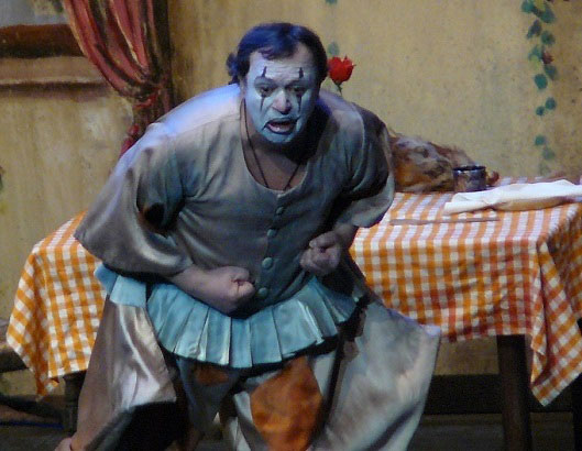 Canio, El Payaso, está interpretado por un Vladimir Galouzine que realiza una maravillosa interpretación del personaje. Es cierto que al oírle cantar se echan en falta algunas cosas, pero la franqueza escénica y lírica con que se desenvuelve este artista sobre el escenario, convierte su recreación de Canio en una auténtica delicia. Incluso su físico, algo rudo y destemplado, le ayuda a fundirse con el personaje de una manera casi ideal. Describir la fuerza musical y escénica que Galouzine y Del Monaco imprimen al personaje y la historia en los últimos diez minutos de la obra, resulta de verdad un esfuerzo inútil. Hay que verlo. "Coraggio", dice un Canio ebrio de amor y vino, encolerizado antes de salir a escena para vengar de la peor forma posible la traición sentimental de Nedda.