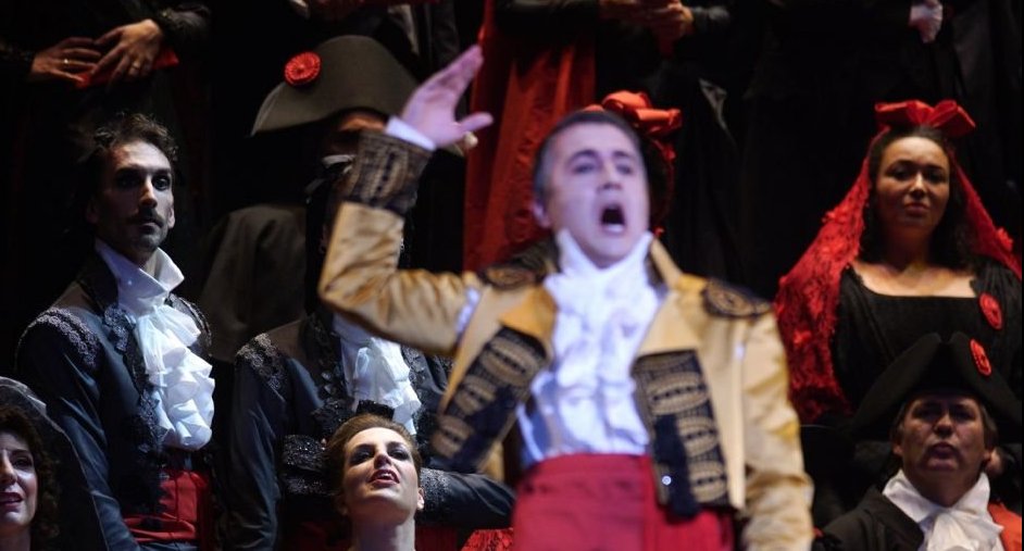 El popular actor Juan Echanove debutaba como director de escena en el teatro lírico y lo primero que hay que subrayar es que, al contrario de lo que sucede otras veces, no se limitó a una “faena de aliño” -término adecuado dado el título que aquí se reseña- sostenida por su nombre o bien, a alguna ocurrencia extraña que atentara contra la obra. Con sus aciertos y desaciertos, la puesta en escena de Echanove sobre escenografía y vestuario de Ana Garay denota una elaboración, una reflexión, un conocimiento de la obra y se puede decir que constituye un trabajo estimable y más que digno, muy superior, desde luego al montaje pudo verse hace 21 años en el Teatro de la Zarzuela. Cierto es que en los momentos de masas sobró gente sobre el escenario, además de no estar bien movida y resultar perjudicada por esa plataforma giratoria circular, algo poco original, que restaba demasiado espacio sobre las tablas. Las pinturas negras de Goya adquieren gran protagonismo tanto en las proyecciones como en su expresión sobre el escenario mediante bailarines y figurantes. Los colores negros y rojos fundamentaron el vestuario y el montaje quiso trazar un paralelismo y proyección a la actualidad de los eternos problemas de España, tanto políticos como sociales, si bien el capítulo cómico no resultó bien desarrollado, constituyendo en opinión del que esto firma, uno de los aspectos fallidos de la producción. En resumen, quiero insistir, una puesta en escena que funciona en una obra que no es fácil, pues tiene muchísimos diálogos y se ofreció, prácticamente, entera, basada en el aspecto musical, al igual que en 2001, en la edición crítica de Emilio Casares Rodicio y Xavier de Paz.