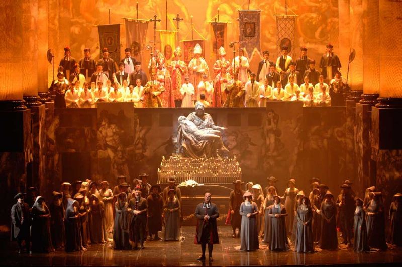 Llegó el primer título de la temporada de ABAO-OLBE en este nuevo año con la reposición de la producción de Tosca firmada por Nuria Espert que se estrenara en 2004 en el Teatro Real de Madrid y que ya había sido vista en Bilbao en septiembre de 2006. En esta ocasión, la dirección de escena fue encomendada a Marco Gandini quien, ya sea por iniciativa propia o por petición expresa de la dirección artística, decidió omitir la escena que se pudo apreciar en la última reposición en Madrid, en 2011, en la que Tosca, después de haber asesinado a Scarpia, arroja el contenido de una copa de vino al Cristo que preside la mesa de despacho del barón, detalle escénico que suscitó en su momento cierta polémica.