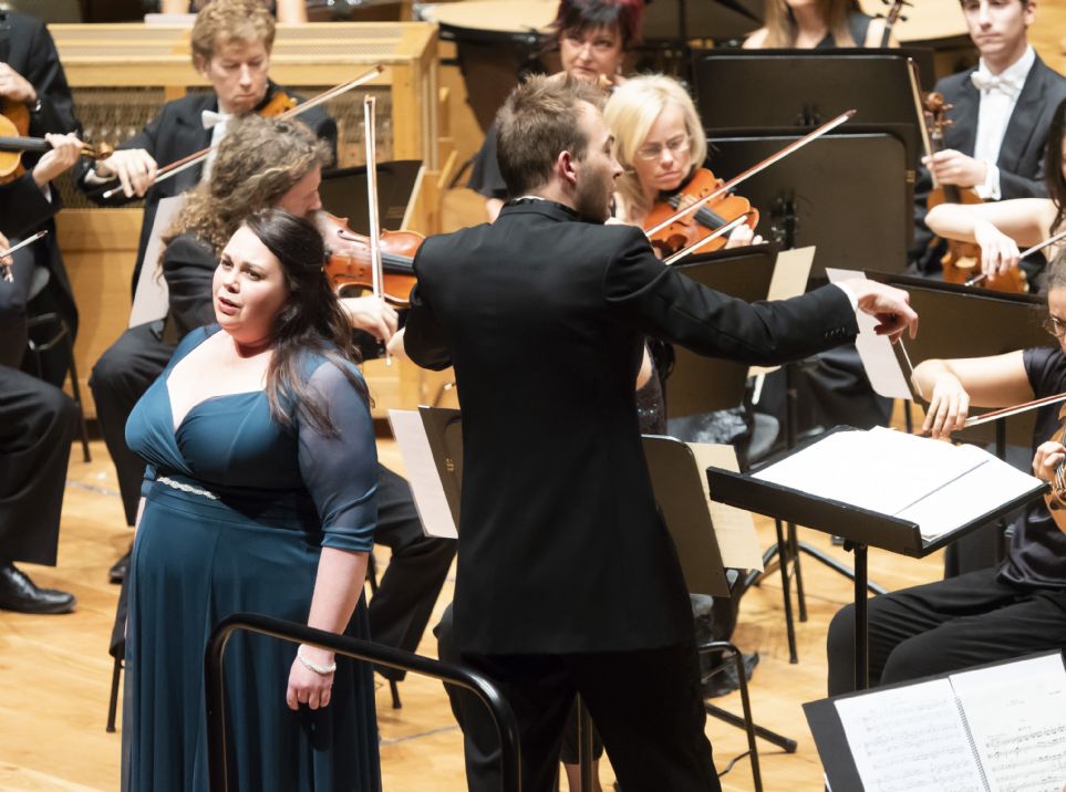 Valladolid. 4-X-2018. Auditorio de Valladolid, Sala sinfónica Jesús López Cobos. Temporada de la Orquesta Sinfónica de Castilla y León. Obertura de El Rapto en el serrallo, K. 384 y Porgi amor qual che ristoro al mio duolo de Las bodas de Fígaro, K. 492  de Mozart, Cuatro últimas canciones y Una vida de héroe, op. 40 de Richard Strauss. Solista: Katherine Broderick, soprano. Director: Andrew Gourlay.